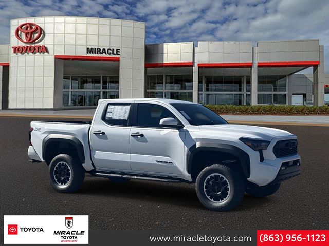 Please don't hesitate to give us a call! We value you as a customer and would love the chance to get you in this great 2025 Toyota Tacoma minutes from anywhere in Central Florida! All New Miracle Toyota vehicles come with our Complementary Ten Year 250k Mile Powertrain Warranty, includes Oil Changes, Oil Filter Replacements, and Tire Rotations, Roadside, and so much more in Benefits to YOU! 3.583 Axle Ratio, 4-Wheel Disc Brakes, 6 Speakers, ABS brakes, Air Conditioning, Alloy wheels, AM/FM radio: SiriusXM, Anti-whiplash front head restraints, Apple CarPlay/Android Auto, Auto High-beam Headlights, Auto-dimming Rear-View mirror, Automatic temperature control, Brake assist, Bumpers: body-color, Driver door bin, Driver vanity mirror, Dual front impact airbags, Dual front side impact airbags, Electronic Stability Control, Emergency communication system: Safety Connect (1-year trial), Exterior Parking Camera Rear, Fabric Seat Trim, Four wheel independent suspension, Front anti-roll bar, Front Bucket Seats, Front Center Armrest, Front fog lights, Front reading lights, Fully automatic headlights, Heated door mirrors, Illuminated entry, JBL Premium Audio, Knee airbag, Leather Shift Knob, Leather steering wheel, Low tire pressure warning, Occupant sensing airbag, Outside temperature display, Overhead airbag, Overhead console, Panic alarm, Passenger door bin, Passenger vanity mirror, Power door mirrors, Power steering, Power windows, Radio: 8" Toyota Audio Multimedia, Rear step bumper, Rear window defroster, Remote keyless entry, Security system, SofTex Seat Trim, Speed control, Speed-sensing steering, Split folding rear seat, Steering wheel mounted audio controls, Tachometer, Telescoping steering wheel, Tilt steering wheel, Traction control, Trip computer, Turn signal indicator mirrors, Variably intermittent wipers, and Wheels: 17" TRD Off-Road Alloy.
