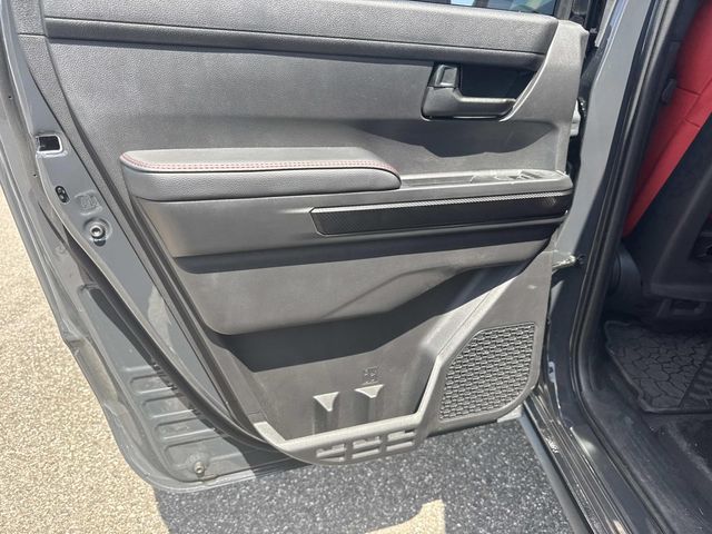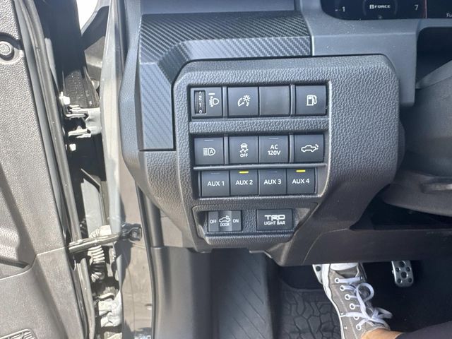 - "TRD Pro" stamped power open-and-close tailgate with hands-free knee-lift assist, integrated taillight bump switches, and jam protection