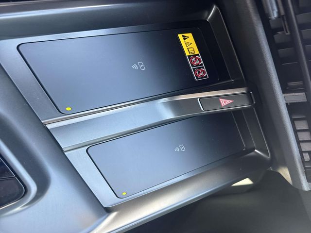 - Center console with covered storage compartment, two cup holders, two Qi-compatible wireless chargers and front lower storage tray