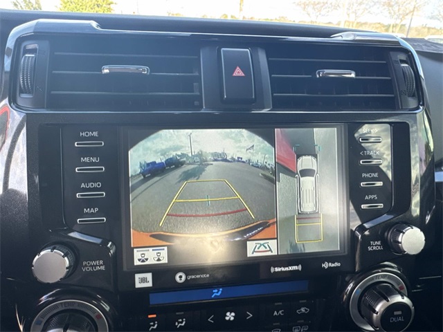 Inside, the cabin offers a refined yet rugged feel with TRD Pro SofTex seating, heated front seats, a power moonroof, and modern technology including Apple CarPlay, Android Auto, navigation, and Toyota Safety Sense driver-assist features.